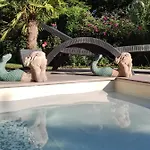There is a fully equipped kitchen completed with an electric kettle, a fridge, and a toaster. A sundeck and a satellite flat-screen, and opportunities for water sports activities and hiking are all accessible for guests. Also, the presence of a swimming pool guarantees a relaxing stay.